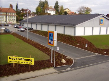 Fertigstellung des neuen Dienstleistungsbereichs "Spinnereistrasse" mit LIDL - FRISTO - ALDI Neubau ALDI - Süd |