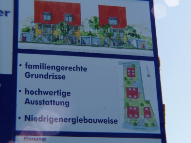 Bau von zwei Einfamilienhäusern und vier Doppelhaus- hälften geplant.